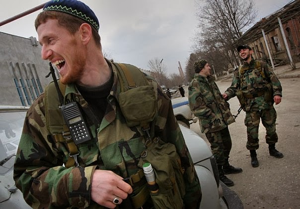 Here are some photos of the J1 and J2 Y DNA Chechen males, where auburn hair and blue eyes are prominent.